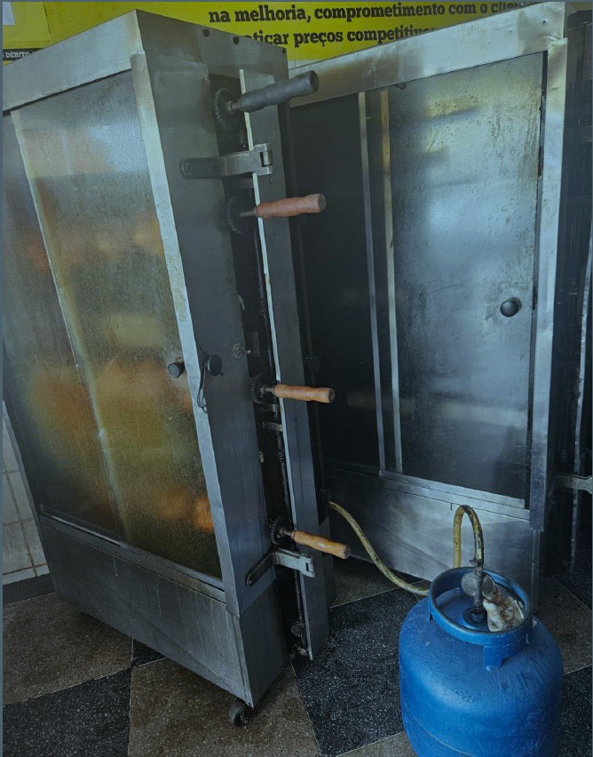 01 Máquina galeteria de inox medindo 1,00m de largura por 1,60 m de altura aproximadamente. Em estado perfeito de funcionamento.
