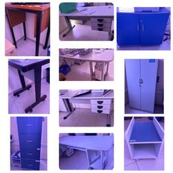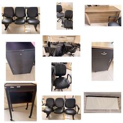 Mobílias diversas: 03 mesas, 01 gaveteiro, 01 balcão. Local: Sala da diretoria.